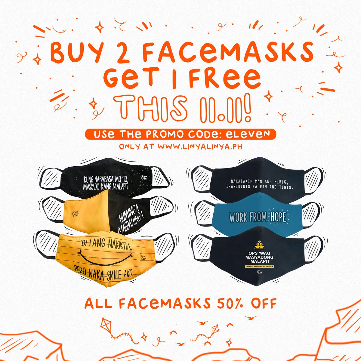 Linya Linya Omg Ngayong 11 11 Sale Sa T Co C4xhm2l2ob Buy 2 Facemasks Get 1 Free Add To Cart 3 Masks Use The Promo Code Eleven At Checkout At Eto Pa 50
